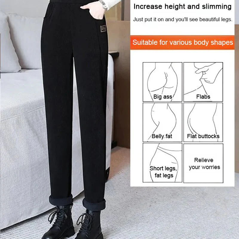1 * Damskie spodnie z wysokim stanem i ciepłą podszewką ze sztucznego polaru
