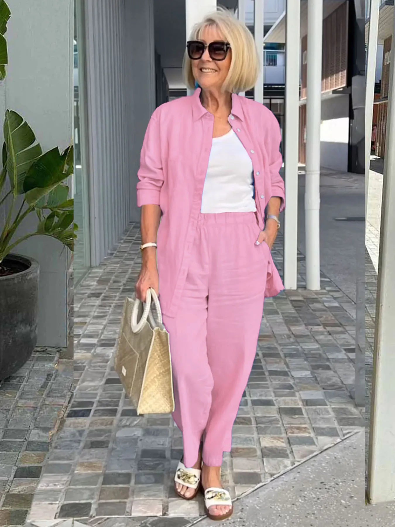 Komplet Seasfore™ je bil zasnovan za ženske, ki cenijo popolno ravnovesje med prefinjenim slogom in vsakodnevnim udobjem. Izdelan je iz vrhunskega bombažnega lana in zagotavlja lahkotnost, svežino ter mehak dotik, ki objame kožo. Komplet Seasfore™ je idealen za sproščene trenutke ali bolj prefinjene priložnosti, prava izbira za tiste, ki si želijo biti edinstvene in samozavestne.