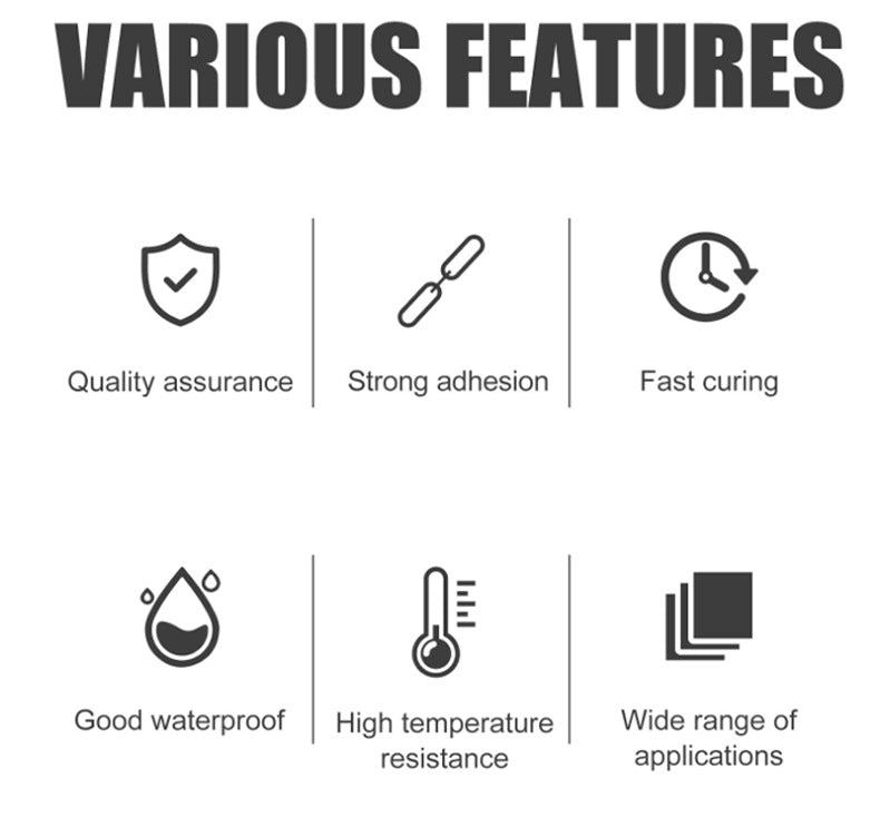 Visokomočno oljno lepilo za varjenje je zasnovano za takojšnje lepljenje poškodovanih predmetov. Njegove vodoodporne in udarno odporne lastnosti naredijo popravilo trajno in zagotavljajo, da se ne bo obrabilo. Za razliko od lepil na osnovi cementa to oljno lepilo zagotavlja mehko in močno vez za vse, kar počnete.