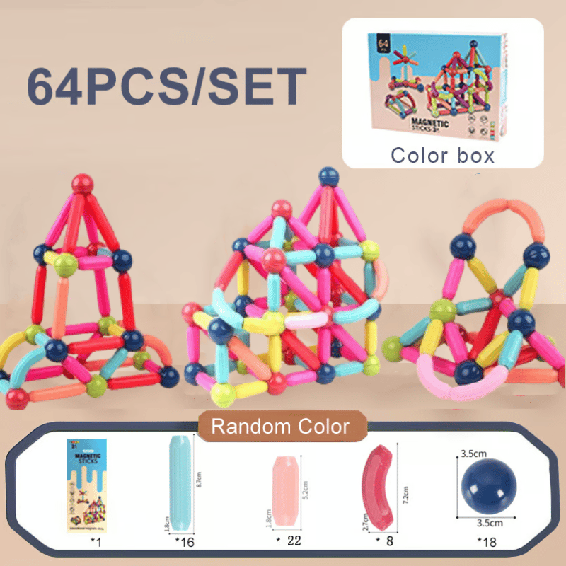 S tem izobraževalnim kompletom magnetnih palic in žogic za gradnjo otroku privoščite izkušnjo, ki si jo zasluži – vključuje 36, 42 ali 64 magnetnih kosov različnih oblik. Izbirajte med ukrivljenimi in ravnimi črtami različnih dolžin ter sprostite otrokovo ustvarjalnost, da ustvari zapletene vzorce v naših bleščečih pastelnih barvah. Spodbudite njihovo domišljijo in vsakemu modelu dodajte umetniški pridih, tako da bo magnetizem, podoben balonu, vsak dan prinesel zabavni duh.