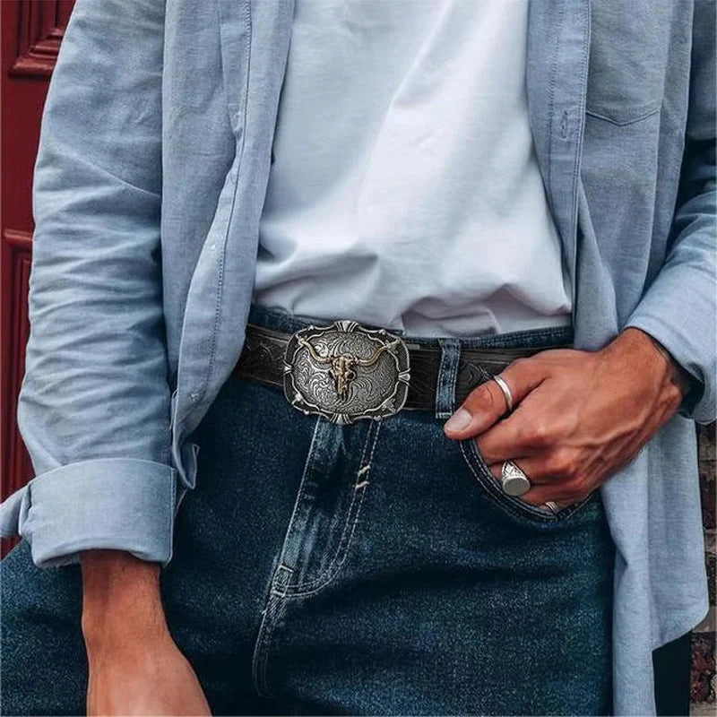 1 * moĆĄki usnjen pas z reliefno bikovo glavo v retro slogu