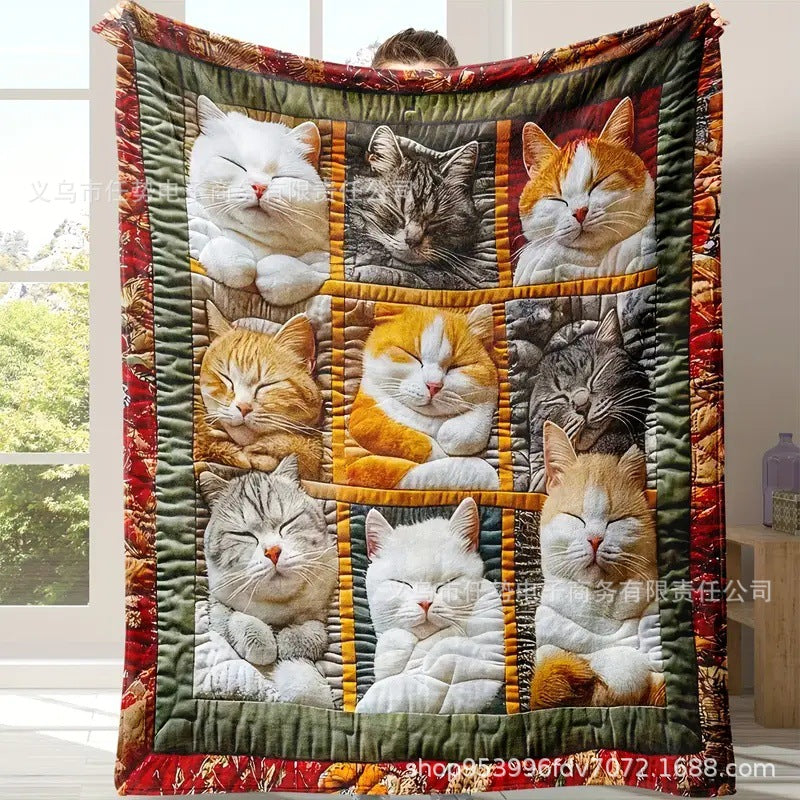 🐾 Moderna flanelasta odeja z mačjim potiskom