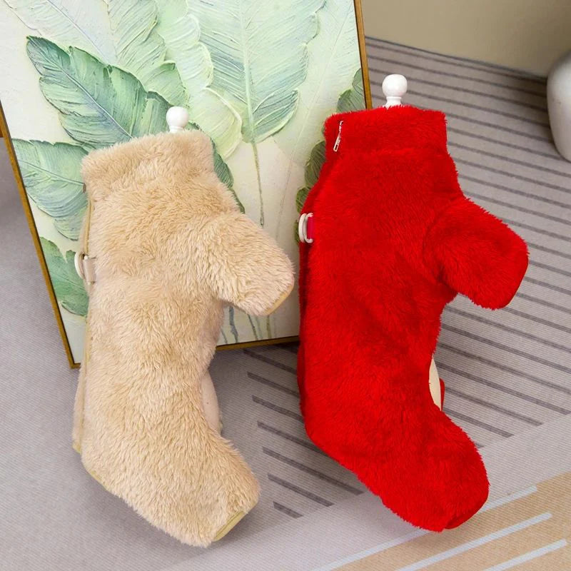 RAZKOŠNI KORALNI ŽAMET: Ta kombinezon, izdelan iz mehkega in prijetnega koralnega žameta, zagotavlja izjemno toplino in udobje, idealen za crkljanje vašega psa v hladnih zimskih dneh.