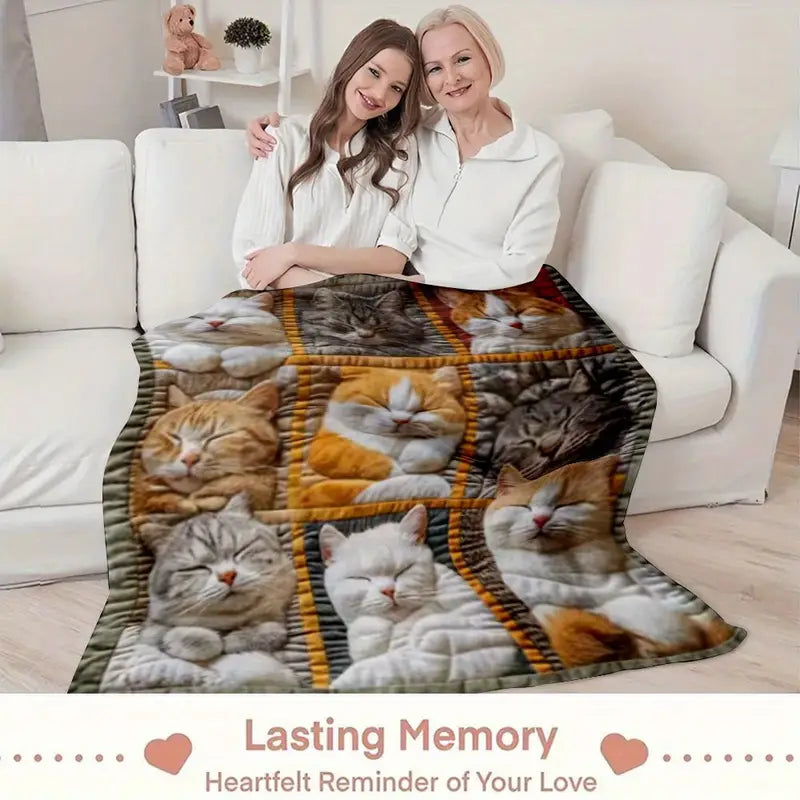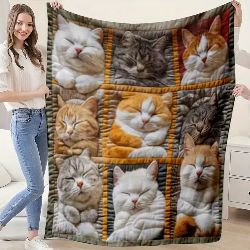 🐾 Moderna flanelasta odeja z mačjim potiskom