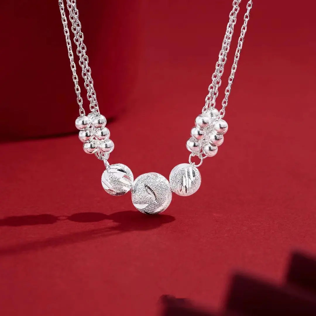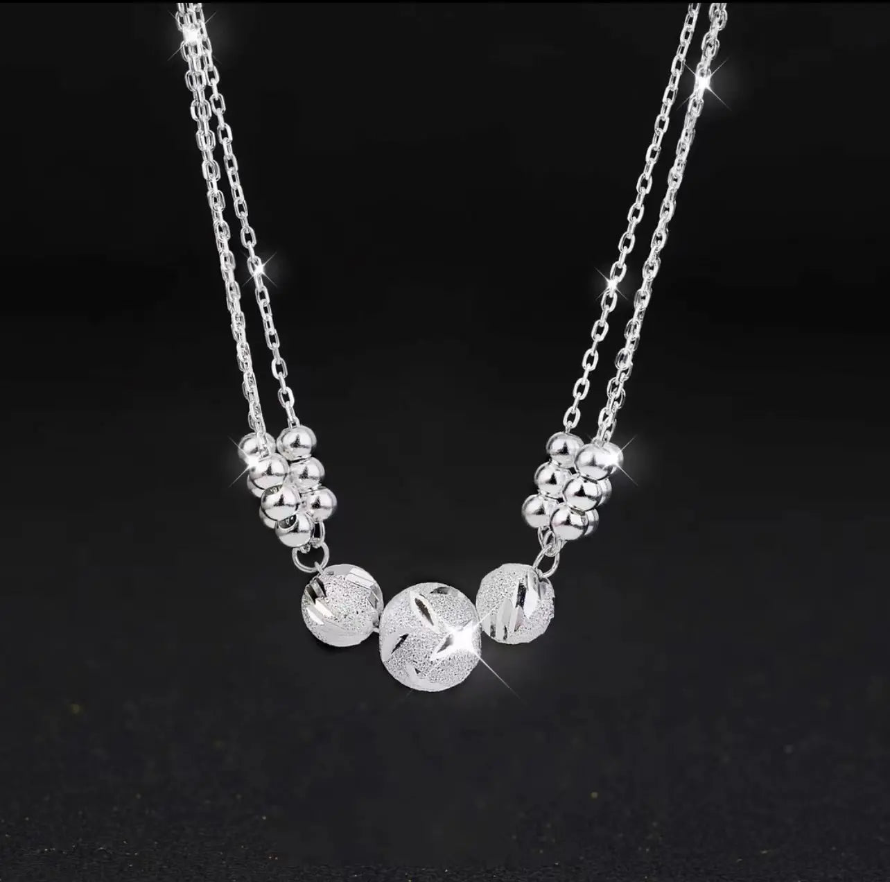 Zupełnie odmienna od zwykłych wzorów, jest misternie zaprojektowana z małych kulek ozdobionych srebrnymi drobinkami pośrodku trzech przecinających się srebrnych pasków, dzięki czemu podczas noszenia wygląda elegancko i elegancko.