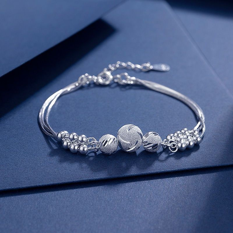 Trzy srebrne łańcuszki również zostały zaprojektowane z małych kawałków srebra, więc sama bransoletka jest w pełni kompletna i nie ma potrzeby dodawania innych ozdób.