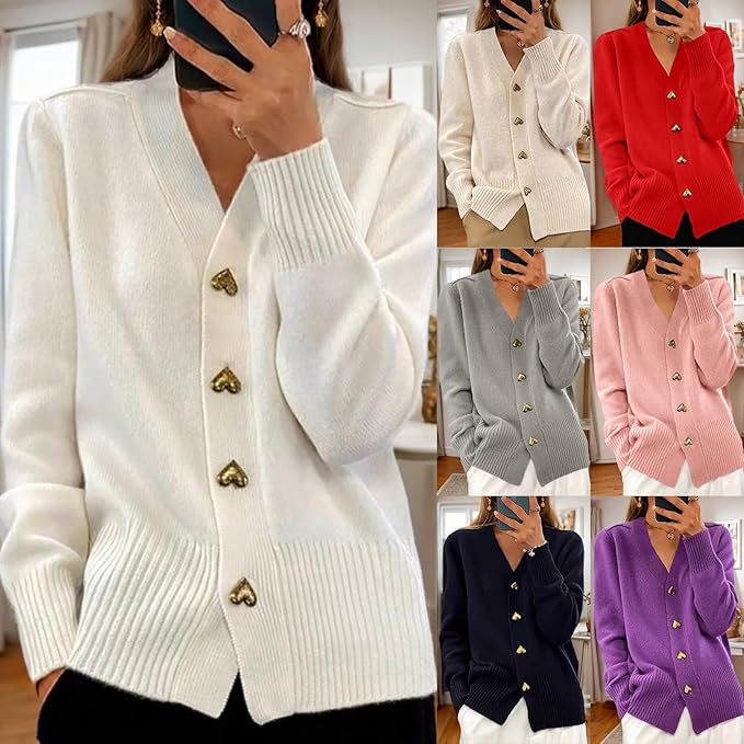 Ta elegantna jopica z gumbi v obliki srca za ženske doda vaši garderobi pridih šarma in prefinjenosti. Okrašena z gumbi v obliki srca, odlično združuje ustvarjalnost in prefinjenost, zaradi česar je odlična izbira za sproščene izhode ali elegantno delovno obleko.